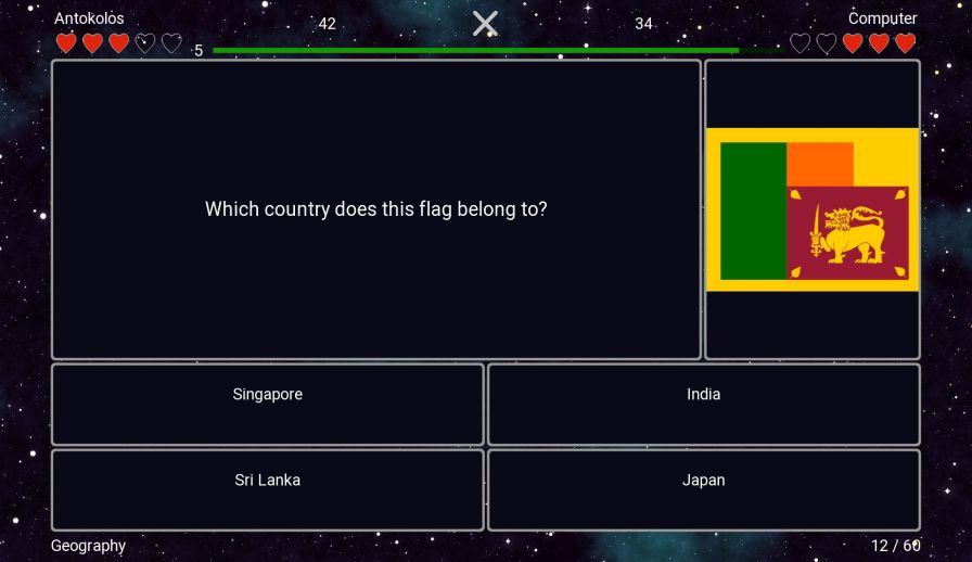 The quiz contains lots of interesting pictures and facts. By using hints and anti-hints, you can build your own game strategy: using hints to give correct answers or using more anti-hints to make your opponent’s game harder.